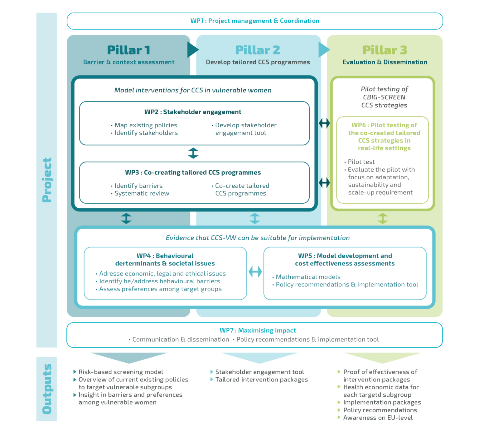 With the support of our partners, based on the results of the different WPs, we will design a toolkit of interventions to promote health equity in CC prevention programmes. These programmes can be adapted to European countries based on requirements of the demand side (characteristics of the target population) and the supply side (health care resources, staff competences, and involvement).