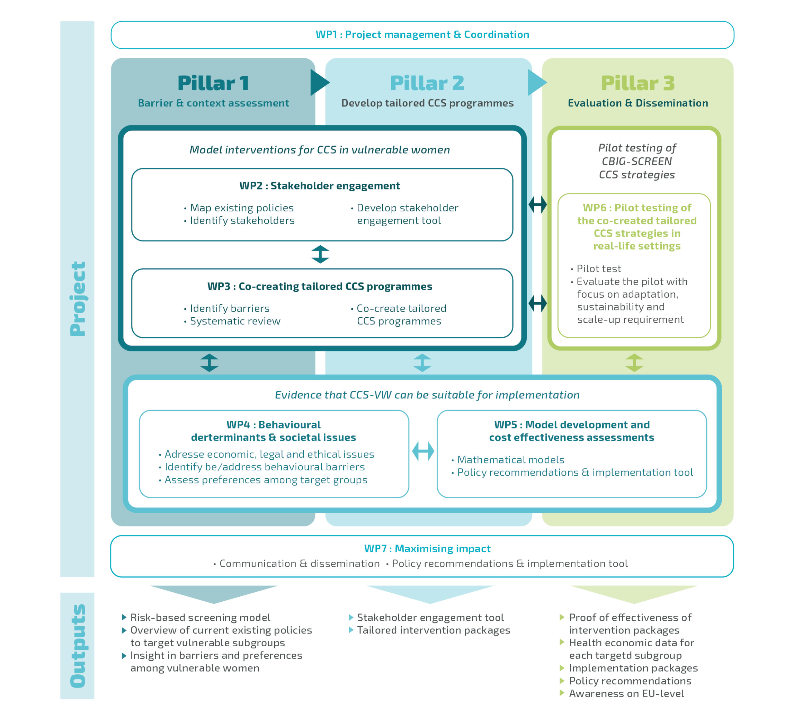 Using qualitative and quantitative methods, CBIG-SCREEN (WP4, WP5 and WP6) will validate the feasibility, acceptability, and efficacy of setting-specific interventions to increase the proportion of women who complete each step in the CCS sequence.