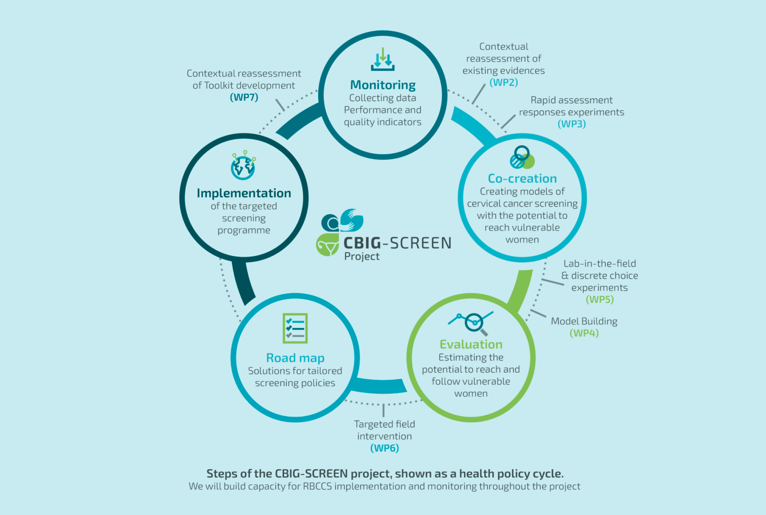 and use this knowledge to inform our design of context specific interventions that encourage tailored CCS in high-risk women. CBIG-SCREEN will use quantitative methods drawn from behavioural economics to identify the main barriers to CCS and study the preferences of vulnerable women for potential interventions to increase screening. CBIG-SCREEN will build on the qualitative evidence generated across its WPs to maximise perceived benefits while mitigating risks and fears (e.g., stigma, coercion) of users that could result from implementing commonly used interventions to increase uptake of cancer screening. CBIG-SCREEN will explore the potential effectiveness of interventions designed to enhance screening uptake in participating countries. We will generate evidence on the relative likely effects of interventions that rely on structural adaptation of existing screening programmes, e.g., financial and non-financial incentives to change behaviours, and on their optimal design.